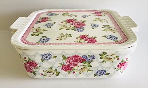 Hydrangeas & Butterflies Decorate This Spring | 3 In 1 Oven Safe Lidded Porcelain Baking Dish | Casserole | Use The Lid For A Tray Or Trivet | (Peonies Pink & Blue | Square 8.5 x 8.5 inches) through an online shopping site.