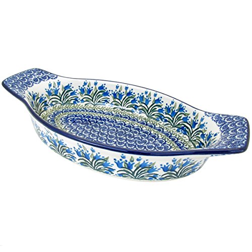 Polish Pottery 13" Handmade Oval Baker with Handles A33- Blue Tulips, hopefully can help you in buying the product.