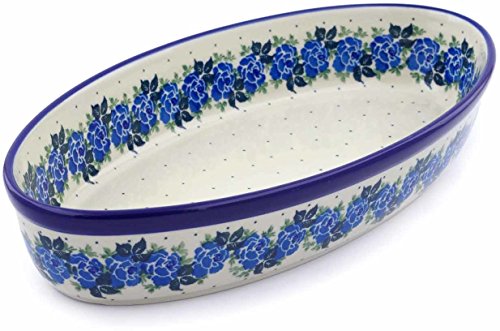 Product Highlight Polish Pottery 14¾-inch Oval Baker made by Ceramika Artystyczna (Blue Garland Theme) + Certificate of Authenticity