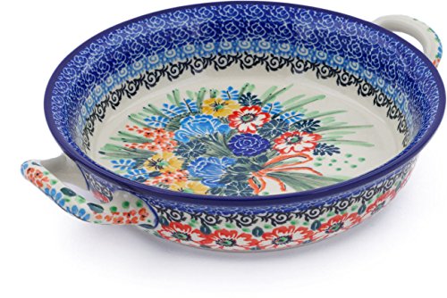 Polish Pottery Medium Round Baker with Handles made by Ceramika Artystyczna (Fall Bouquet Theme) Signature UNIKAT + Certificate of Authenticity through an online shopping site.