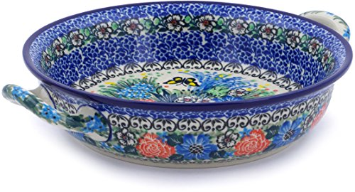 Product Highlight Polish Pottery Medium Round Baker with Handles made by Ceramika Artystyczna (Baby's Breath Butterfly Theme) Signature UNIKAT + Certificate of Authenticity