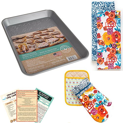The Pioneer Woman Flea Market Kitchen Towels, Oven Mitt, Pot Holder & Pionner Woman Timeless Floral Quarter Sheet Cake Pan 8 Piece Bundle Set with 3 Recipe Cards, hopefully can help you in buying the product.