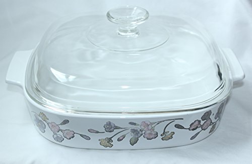 - Vintage Corning Ware " Pastel Bouquet " Shallow Casserole Browning Skillet Baking Dish A-10-B w/ Lid 10"